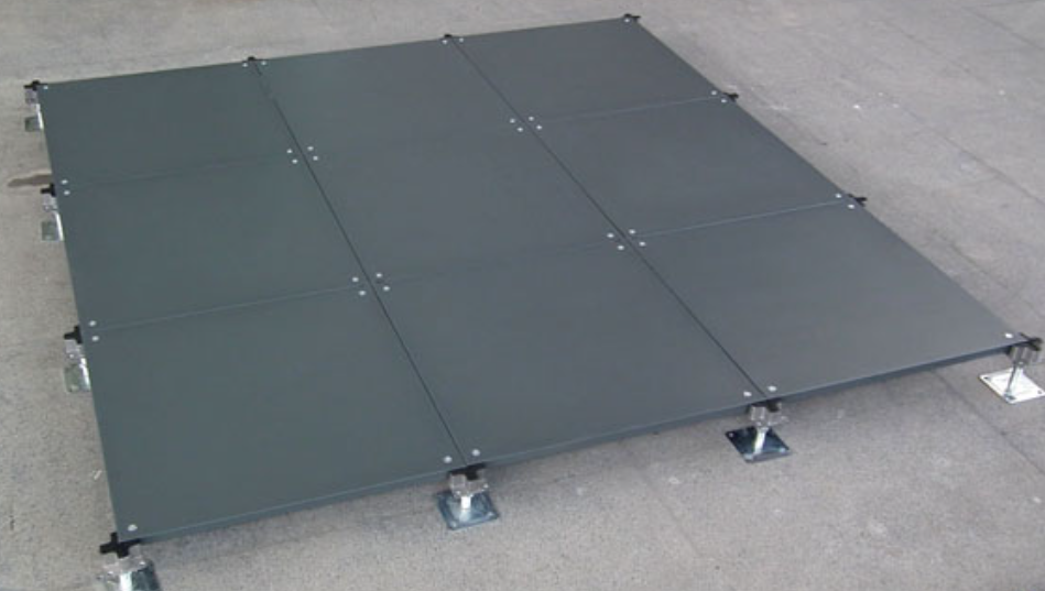 四角獨(dú)立支撐結(jié)構(gòu),地板的上板為寶鋼超硬質(zhì)鋼板,經(jīng)拉伸后點(diǎn)焊成形,下板為寶鋼拉伸級(jí)鋼板,地板表面經(jīng)過(guò)導(dǎo)電環(huán)氧樹(shù)脂塑處理,內(nèi)腔填充發(fā)泡水泥填料,支架為鍍鋅及鑄鋁合金結(jié)構(gòu),高度可調(diào)節(jié)并能自鎖,地板四周成型有切邊與鉚接兩種。